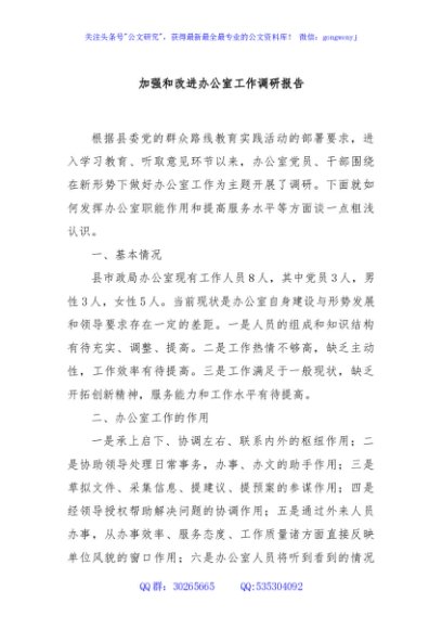 / 加强和改进办公室工作调研报告