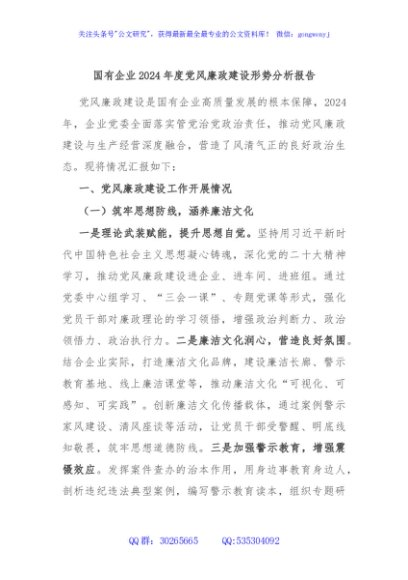 / 国有企业2024年度党风廉政建设形势分析报告