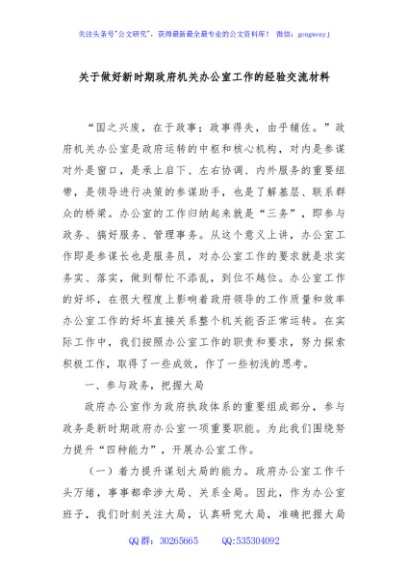/ 关于做好新时期政府机关办公室工作的经验交流材料