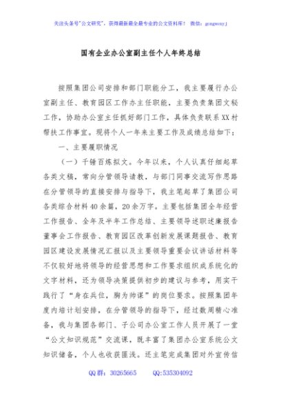 / 国有企业办公室副主任个人年终总结