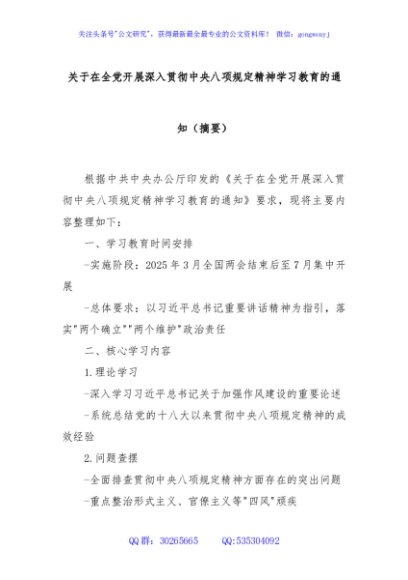 / 关于在全党开展深入贯彻中央八项规定精神学习教育的通知(摘要)