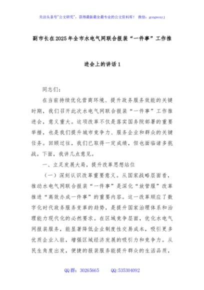 / 副市长在2025年全市水电气网联合报装“一件事”工作推进会上的讲话1
