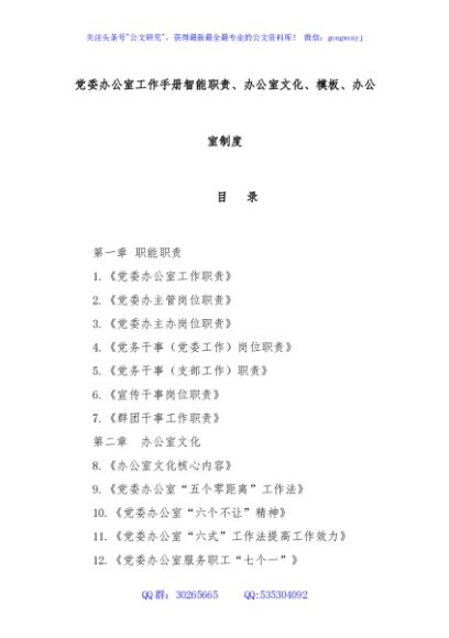 / 党委办公室工作手册智能职责、办公室文化、模板、办公室制度
