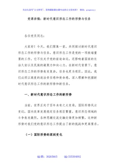 / 党课讲稿:新时代意识形态工作的形势与任务