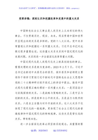 / 党课讲稿:深刻认识和把握改革和发展中的重大关系