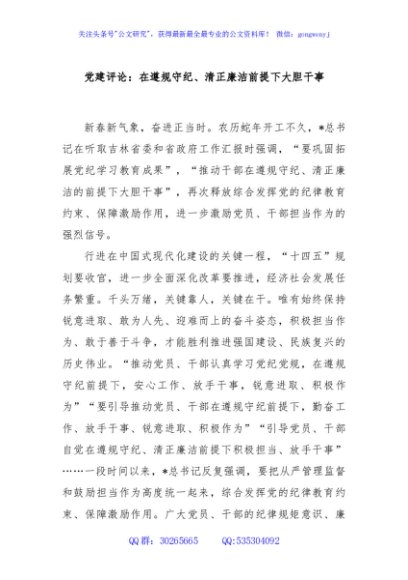 / 党建评论:在遵规守纪、清正廉洁前提下大胆干事