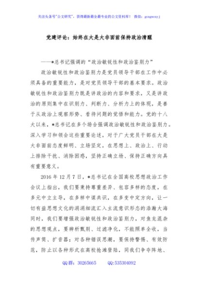 / 党建评论:始终在大是大非面前保持政治清醒