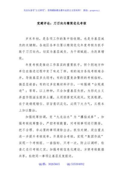 / 党建评论:刀刃向内精简优化考核