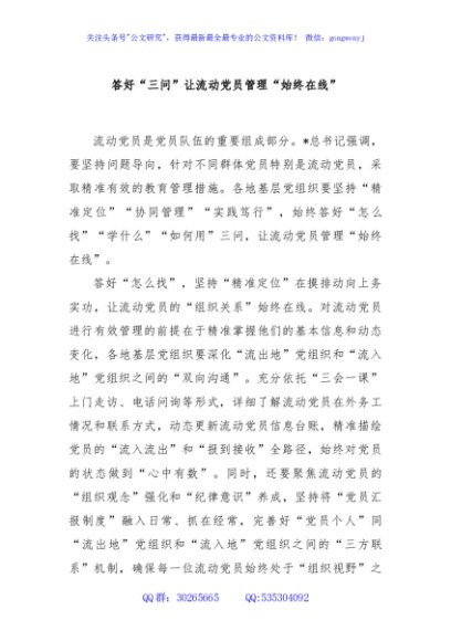 / 答好“三问”让流动党员管理“始终在线”