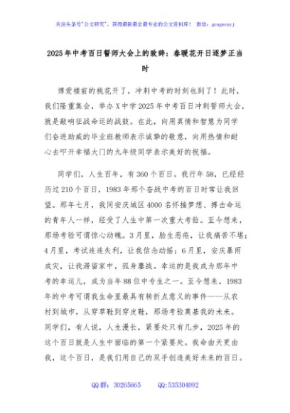 / 2025年中考百日誓师大会上的致辞:春暖花开日逐梦正当时