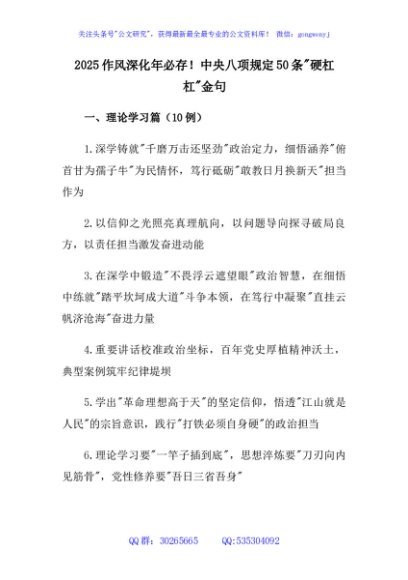 / 2025作风深化年必存!中央八项规定50条硬杠杠金句