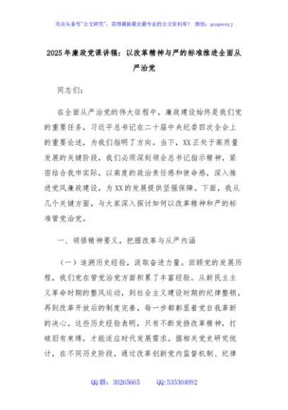/ 2025年廉政党课讲稿:以改革精神与严的标准推进全面从严治党