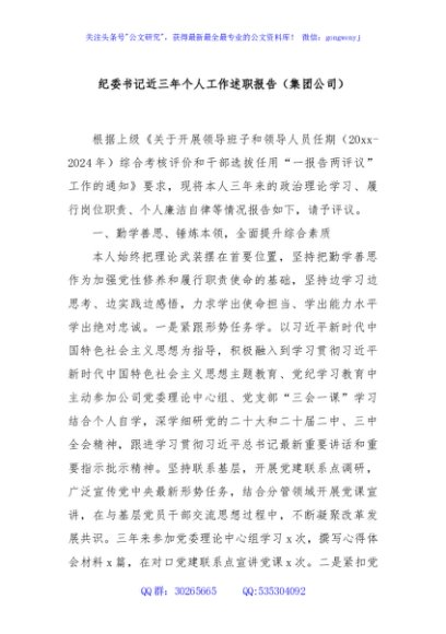 / 纪委书记近三年个人工作述职报告(集团公司)