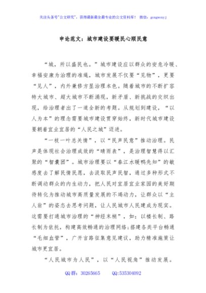 / 申论范文:城市建设要暖民心顺民意