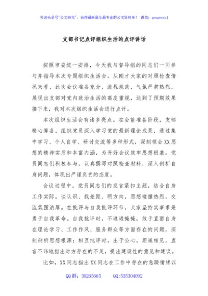 / 支部书记点评组织生活的点评讲话