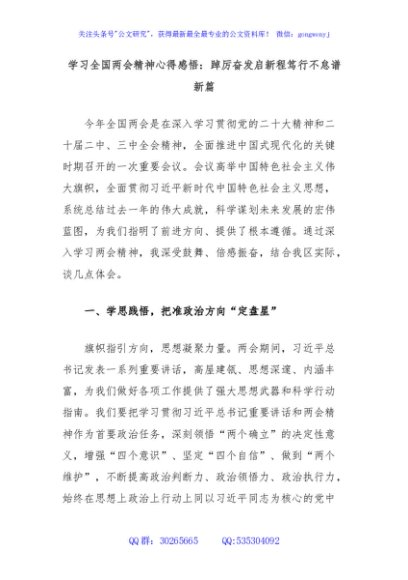 / 学习全国两会精神心得感悟:踔厉奋发启新程笃行不怠谱新篇