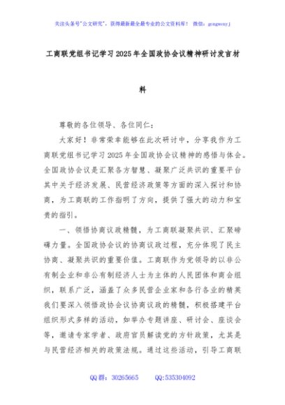 / 工商联党组书记学习2025年全国政协会议精神研讨发言材料