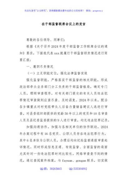 / 在干部监督联席会议上的发言