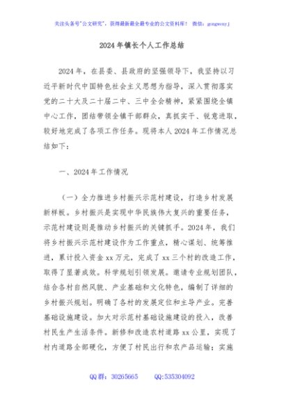/ 2024年镇长个人工作总结