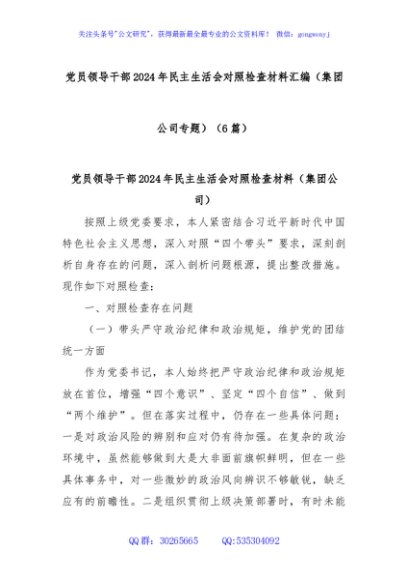 / (6篇)党员领导干部2024年民主生活会对照检查材料汇编(集团公司专题)