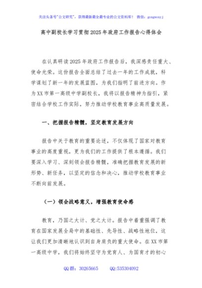 / 高中副校长学习贯彻2025年政府工作报告心得体会