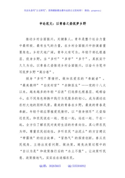/ 申论范文:以青春之姿筑梦乡野