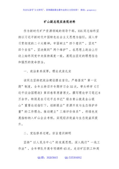 / 矿山副总现实表现材料