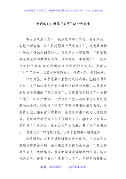/ 申论范文:抓住“实干”这个传家宝
