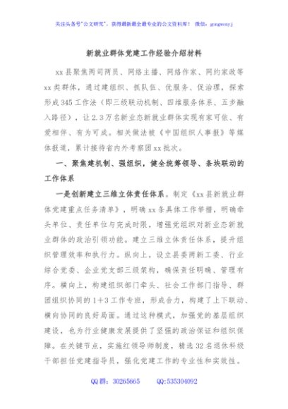 / 新就业群体党建工作经验介绍材料
