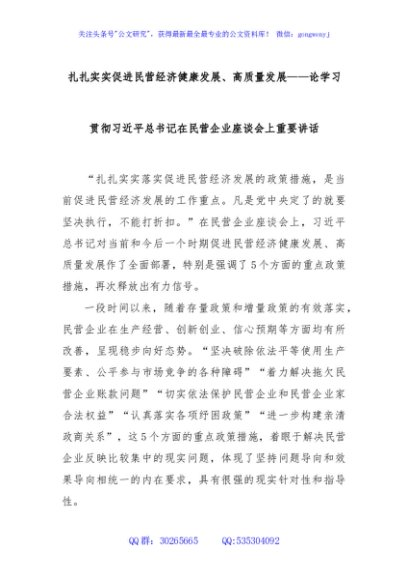 / 扎扎实实促进民营经济健康发展、高质量发展——论学习贯彻习近平总书记在民营企业座谈会上重要讲话