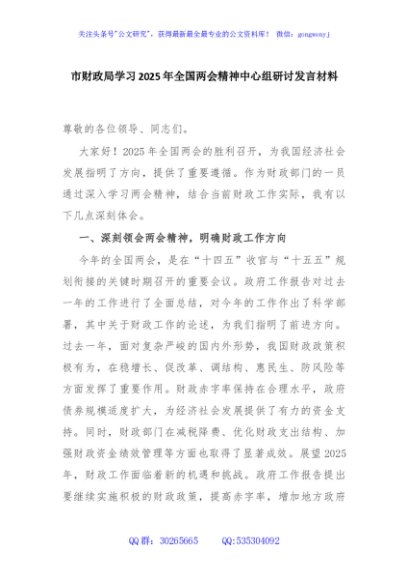 / 市财政局学习2025年全国两会精神中心组研讨发言材料