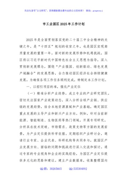 / 市工业园区2025年工作计划