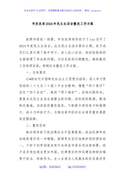 / 市发改局2024年民主生活会整改工作方案