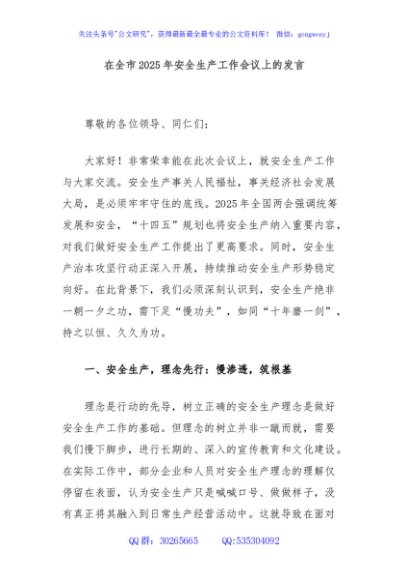 / 在全市2025年安全生产工作会议上的发言