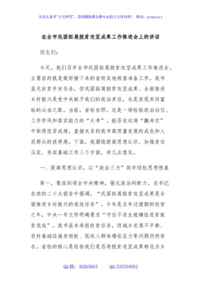 / 在全市巩固拓展脱贫攻坚成果工作推进会上的讲话