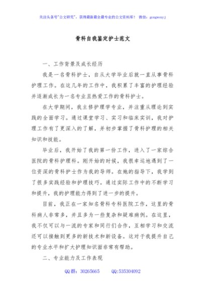 / 骨科自我鉴定护士范文