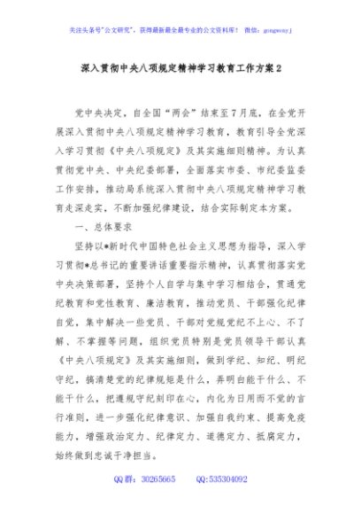 / 深入贯彻中央八项规定精神学习教育工作方案2