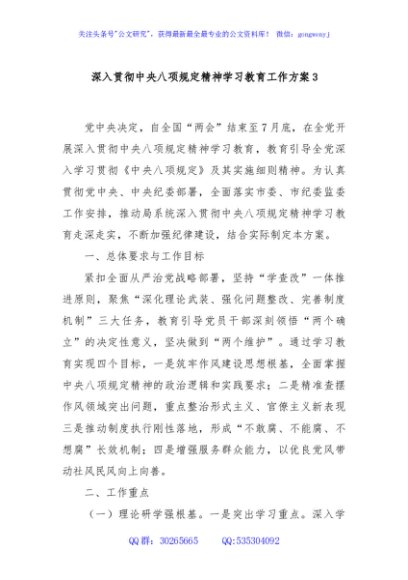 / 深入贯彻中央八项规定精神学习教育工作方案3