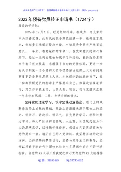 2023年预备党员转正申请书