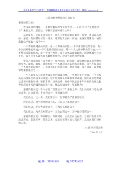 / 县妇联世界读书日倡议书