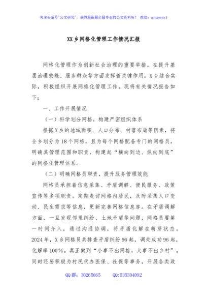 / XX乡网格化管理工作情况汇报