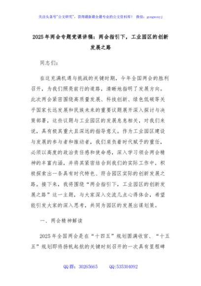 / 2025年两会专题党课讲稿:两会指引下,工业园区的创新发展之路