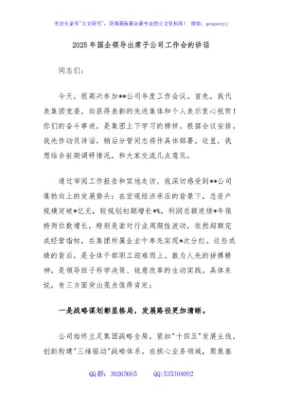 / 2025年国企领导出席子公司工作会的讲话