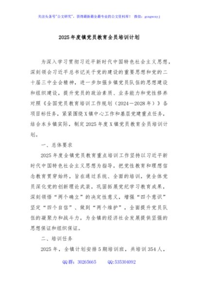 / 2025年度镇党员教育全员培训计划