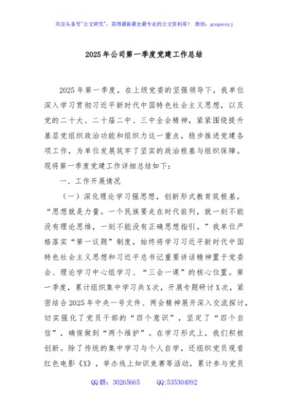 / 2025年公司第一季度党建工作总结
