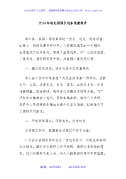 / 2024年幼儿园园长述职述廉报告