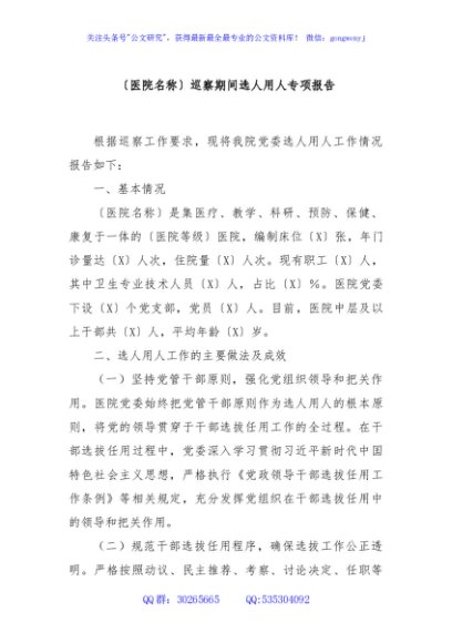 / 〔医院名称〕巡察期间选人用人专项报告