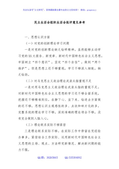 / 民主生活会组织生活会批评意见参考