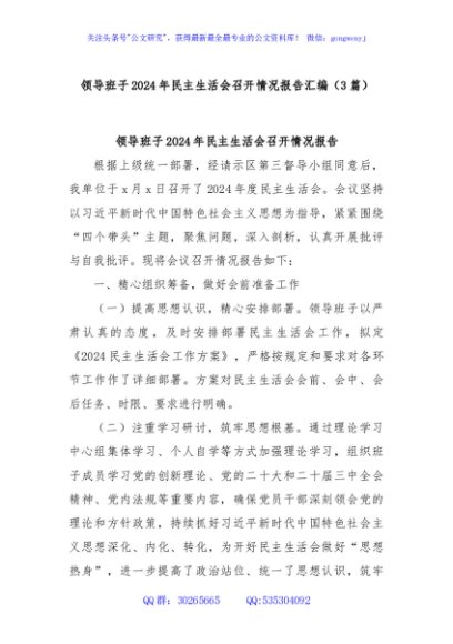 / (3篇)领导班子2024年民主生活会召开情况报告汇编