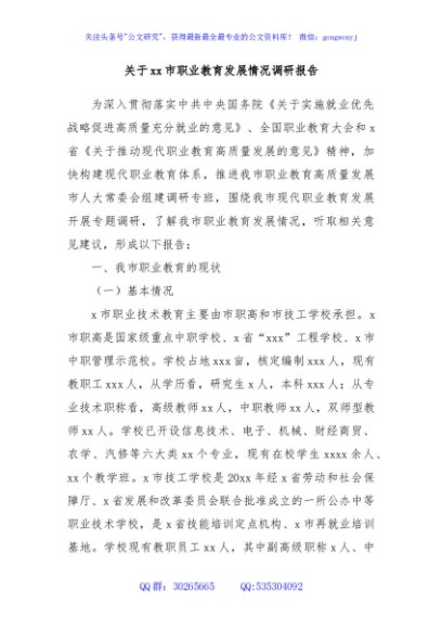 / 关于xx市职业教育发展情况调研报告